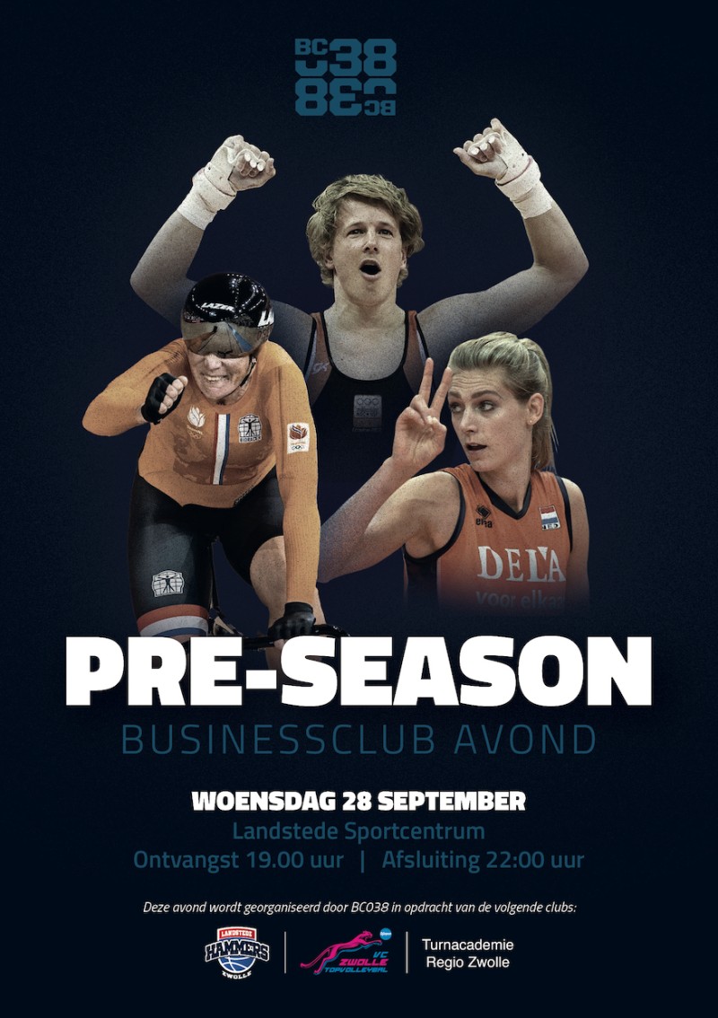 Zoals aangekondigd starten we het seizoen met een speciale pre-season businessclub avond. Tijdens deze avond introduceren we de drie sporten die we ondersteunen met demonstraties van de teams en een toelichting op het seizoen door de staf. Daarnaast gaan we aan de hand van een drietal thema's in gesprek met een panel van topsporters. Kirsten Wild, Bas Tietema en Epke Zonderland zullen aanschuiven om met Daniel Godinho Veiga in gesprek te gaan.